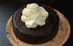 Кекс получается темно-коричневого цвета. После того, как его вынимают из духовки, надо его полностью охладить, затем только убрать бумагу и вынуть из формы.